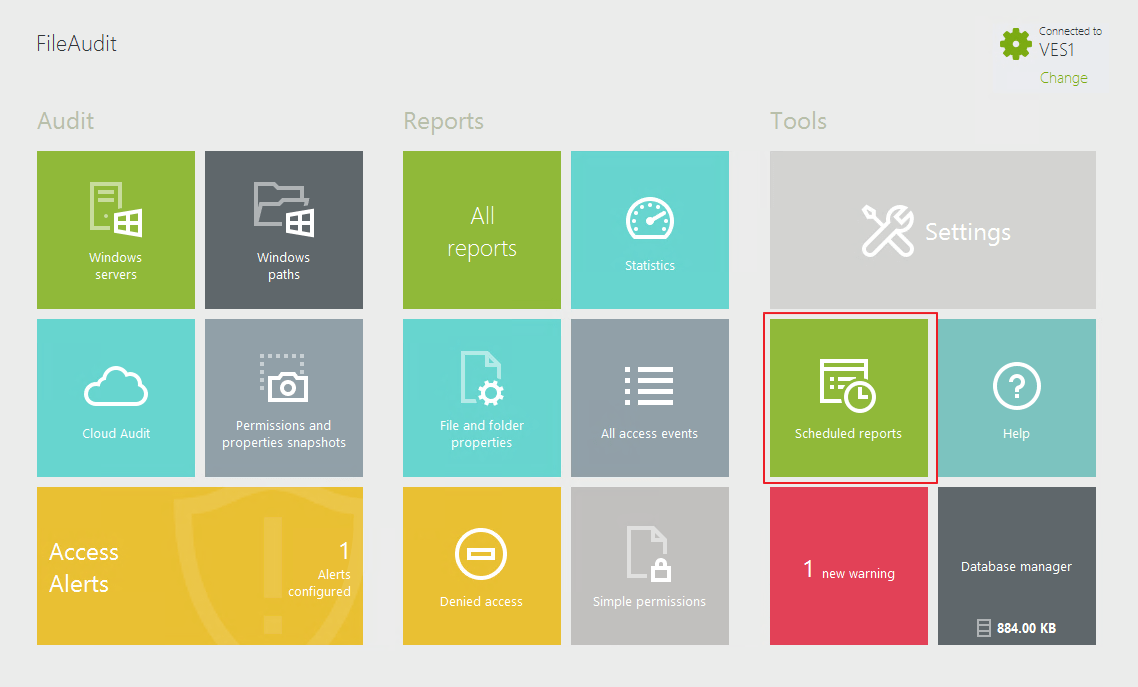 You can create a customized report by clicking on the Scheduled reports tile from the FileAudit hub, or directly from a built-in report by clicking on the three dots, and selecting "schedule this report".